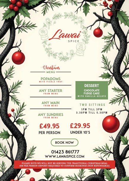 Posted on Sally7. June, 2023 Thank you for bringing the best Indian cuisine to us. It can’t be beaten, it’s so good. Customer service is the best. Such friendly staff and service. Thank you for looking after us so well. See you soon.Posted on Brendan harkin Harkin6. June, 2023 Came here to the lawai on Monday for a meal with my wife, not from Knaresborough and can say that the starters and curry was beautiful, staff very attentive and polite, will definitely be going again when visiting Knaresborough. Keep it up lads👌Posted on Tim Barbary5. June, 2023 An extraordinary quality - service ambience and food - all fresh ingredientsPosted on Naomi Williamson3. June, 2023 Absolutely amazing! Food was absolutely fantastic really freah abd varietyof choices. Great service and lovely atmosphere. Honestly one of the best curry's I have had in ages. Great assett to Knaresborough. Will be back ! 🥰Posted on Caroline Greenhalgh3. June, 2023 Tried Lawai Spice last night for the first time since they moved from Selby to Knaresborough. The food and the service were both top notch, and nice refreshed atmosphere and decor with the new owners. The previous Spice Village had become very tired and the food mediocre, so nice to have another 10 out of 10 place back in the town. Well done Lawai Spice - we will be back! :0)Posted on Vicky Boyle2. June, 2023 Fantastic newbie … outstanding curry . Highly recommended, and I like to think of myself as a curry connoisseur!!Posted on Muhammad Saju28. May, 2023 Google rating score: 5.0 of 5, based on 7 reviews